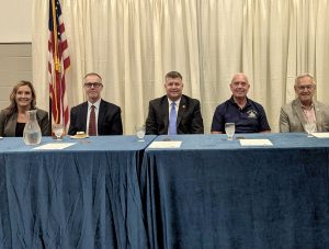 CAMBRIDGE, Ohio — Ohio Lt. Gov. Jim Tressel provided remarks Wednesday, October 1, during the Cambridge-Guernsey Community Improvement Corporation (CGCIC) Manufacturing Appreciation Luncheon held at the Pritchard Laughlin Civic Center. About 100 representatives from manufacturing companies, allied industries, education, and government attended the event. The manufacturing appreciation luncheon is held in October in celebration of Manufacturing Month. Park National Bank and OhioSE Economic Development sponsored this year’s event.